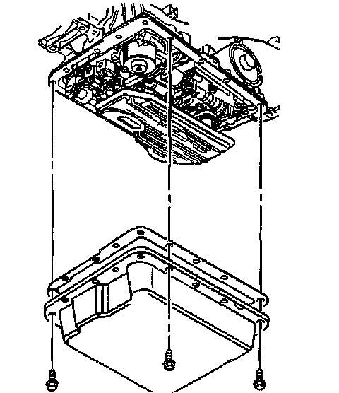 15. Clean the transmission case and the oil pan gasket surfaces with solvent, and air dry. You must remove all traces of the old gasket material.