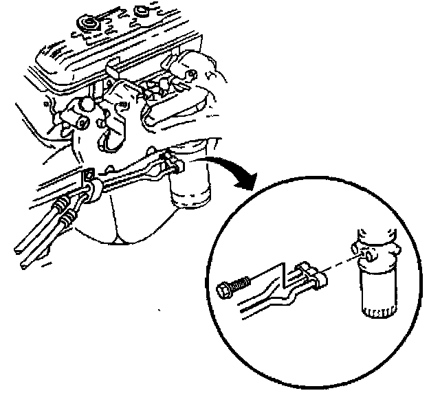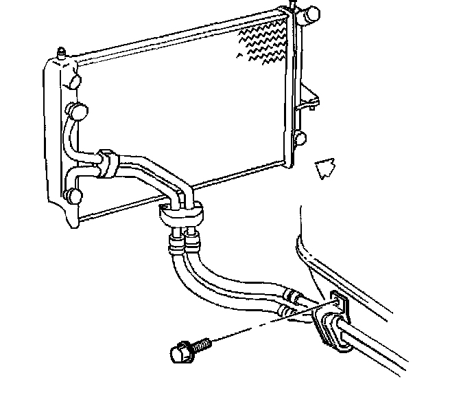 3. Remove the oil cooler line to engine clip bolt.