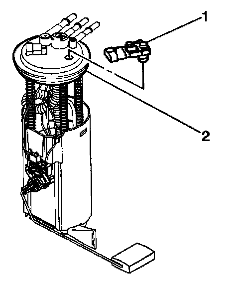 1. Install the fuel tank pressure sensor (1) to the modular fuel sender (2).