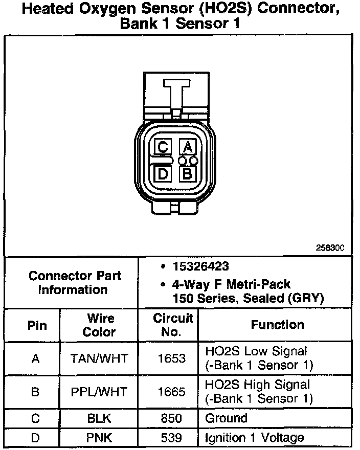 Heated Oxygen Sensor (HO2S) Connector, Bank 1 Sensor 1: