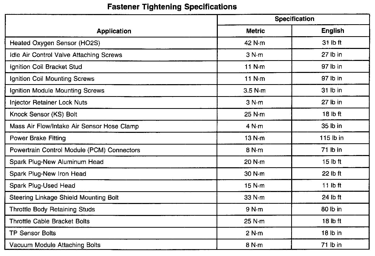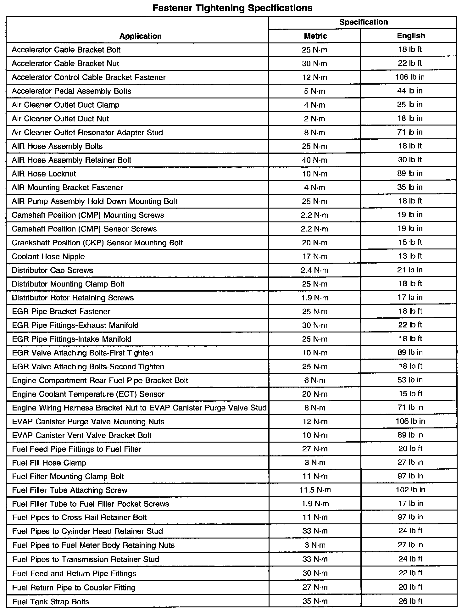Fastener Tightening Specifications (Part 1 Of 2):