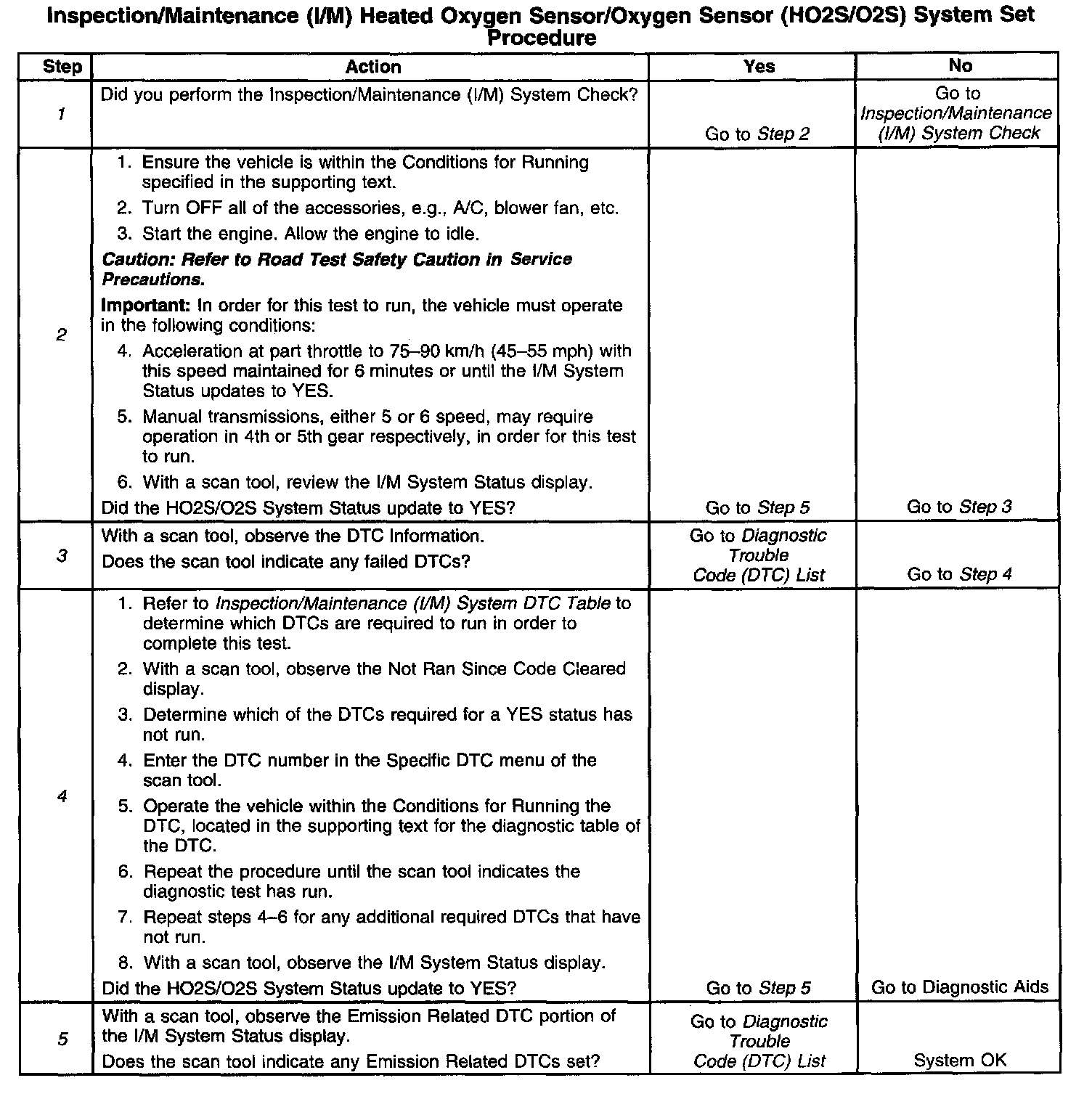 5. The I/M System Status only reports on whether or not a diagnostic has run, not what the outcome of the test was. If any Emission Related DTC sets after the tests are complete, the DTC will require diagnosis.