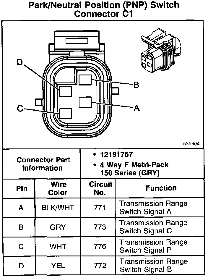 Park/Neutral Position (PNP) Switch Connector C1: