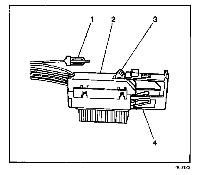3. Connect the SDM wiring harness connector (2) to the SDM (4).