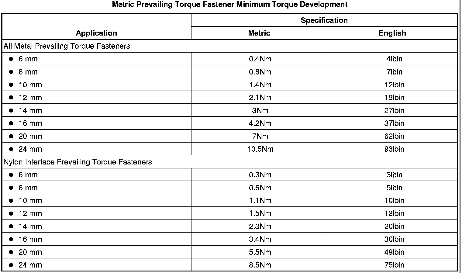 * The fastener develops the specified minimum torque against its counterpart prior to the fastener seating