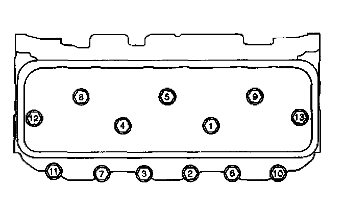 - Tighten the medium bolts (12 and 13) on the final pass in sequence to 65 degrees.