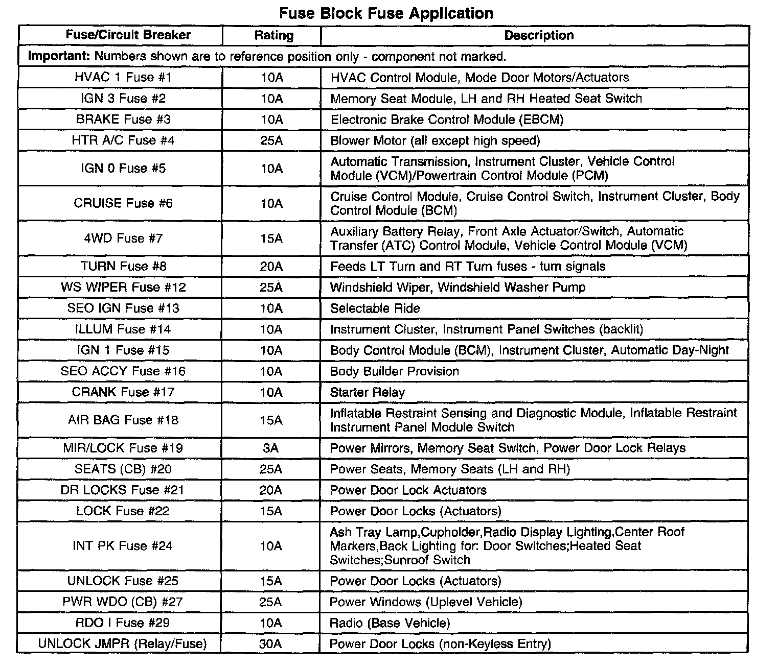 Fuse Block Fuse Application: