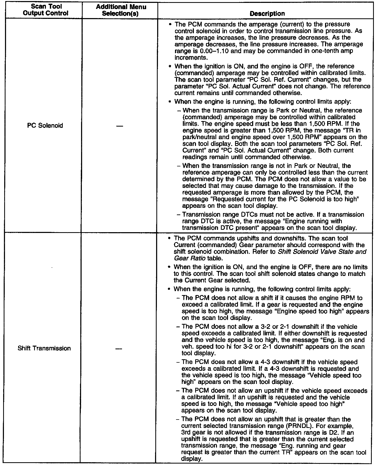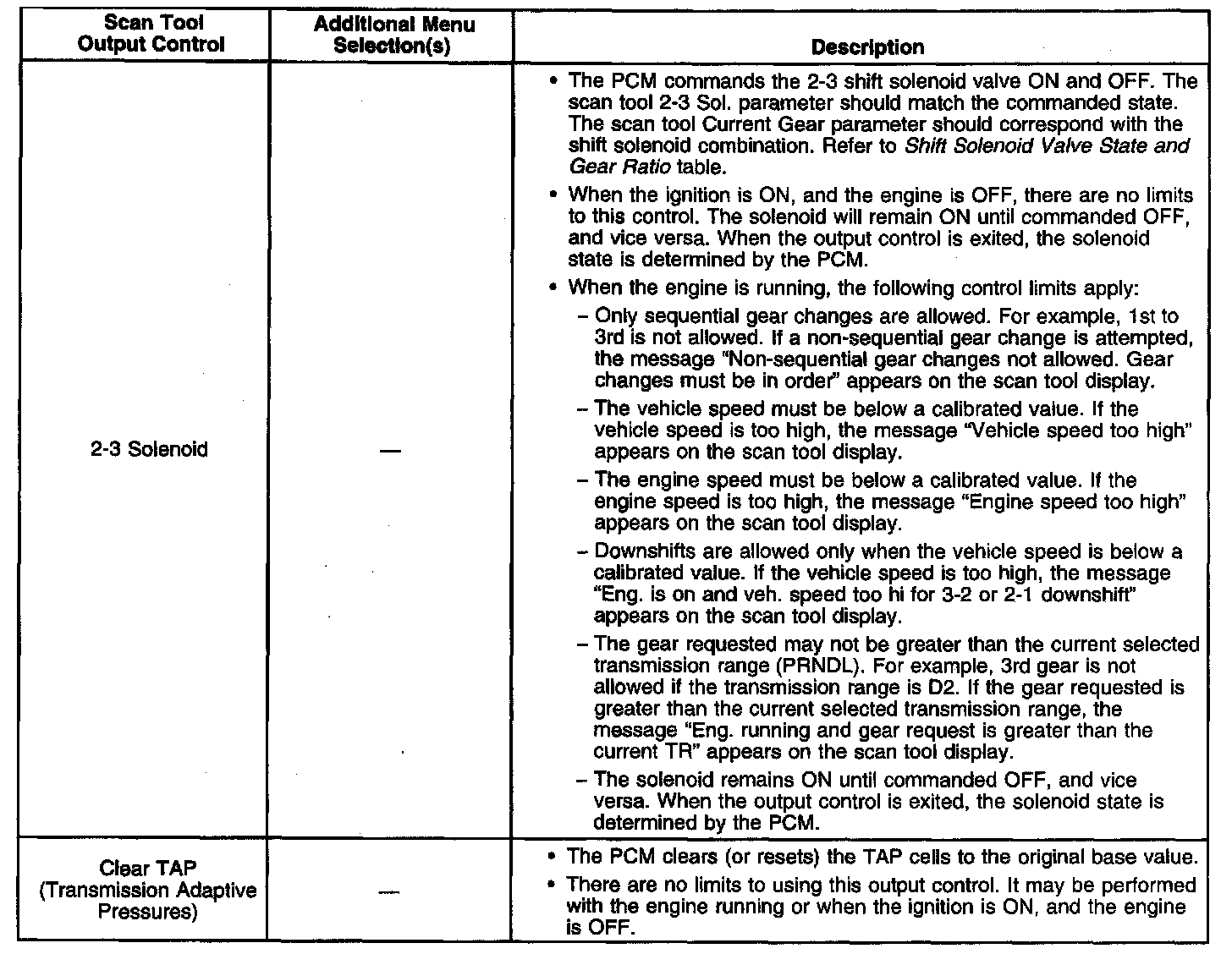 Scan Tool Output Controls