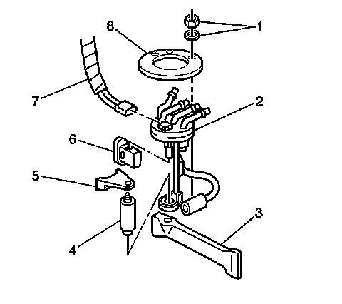 The fuel sender assembly consists of the following major components:
