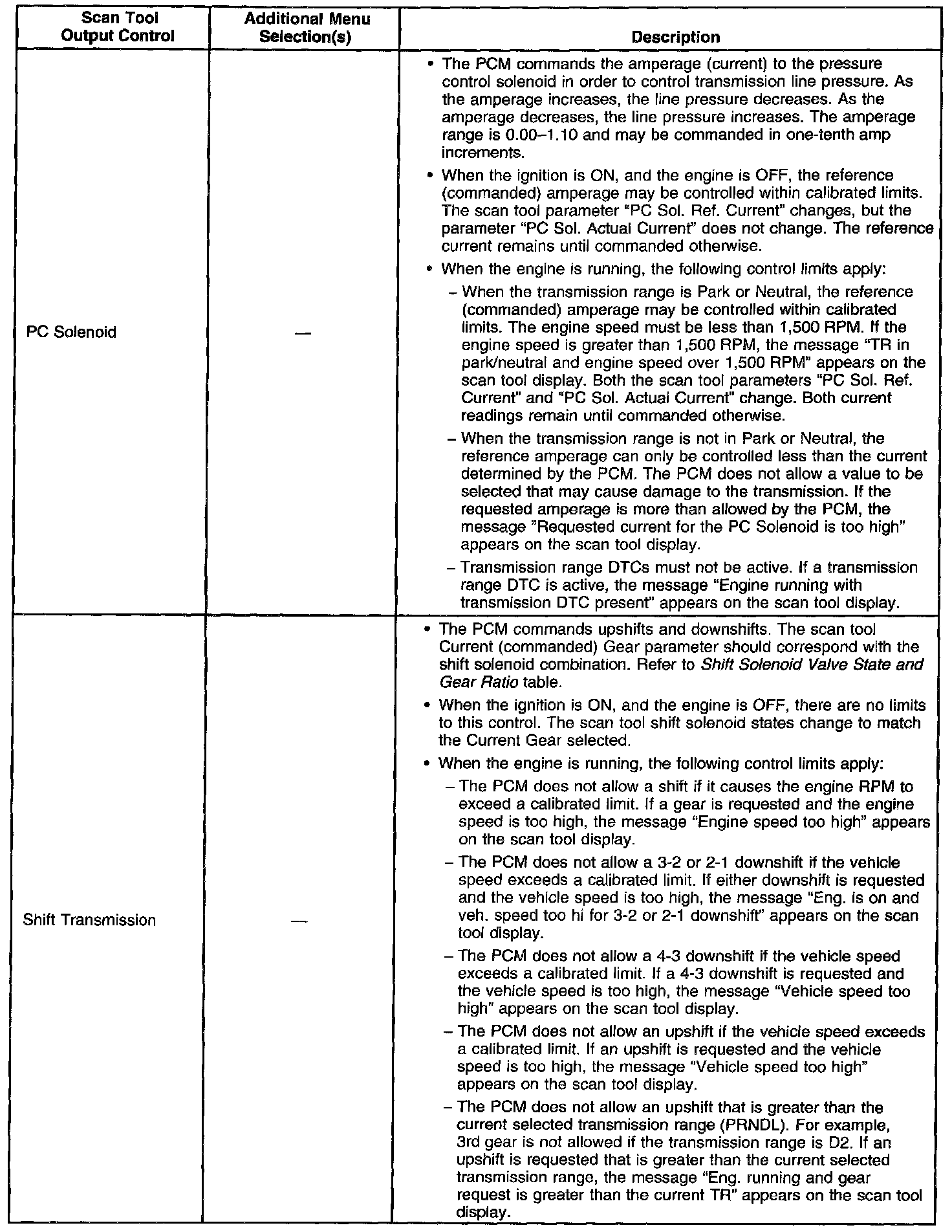 Scan Tool Output Controls