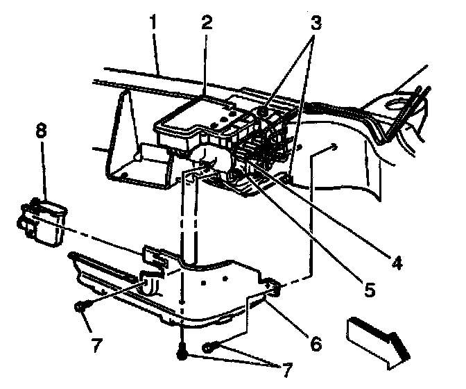 3. Install the EHCU shield (6) and shield bolts (7).