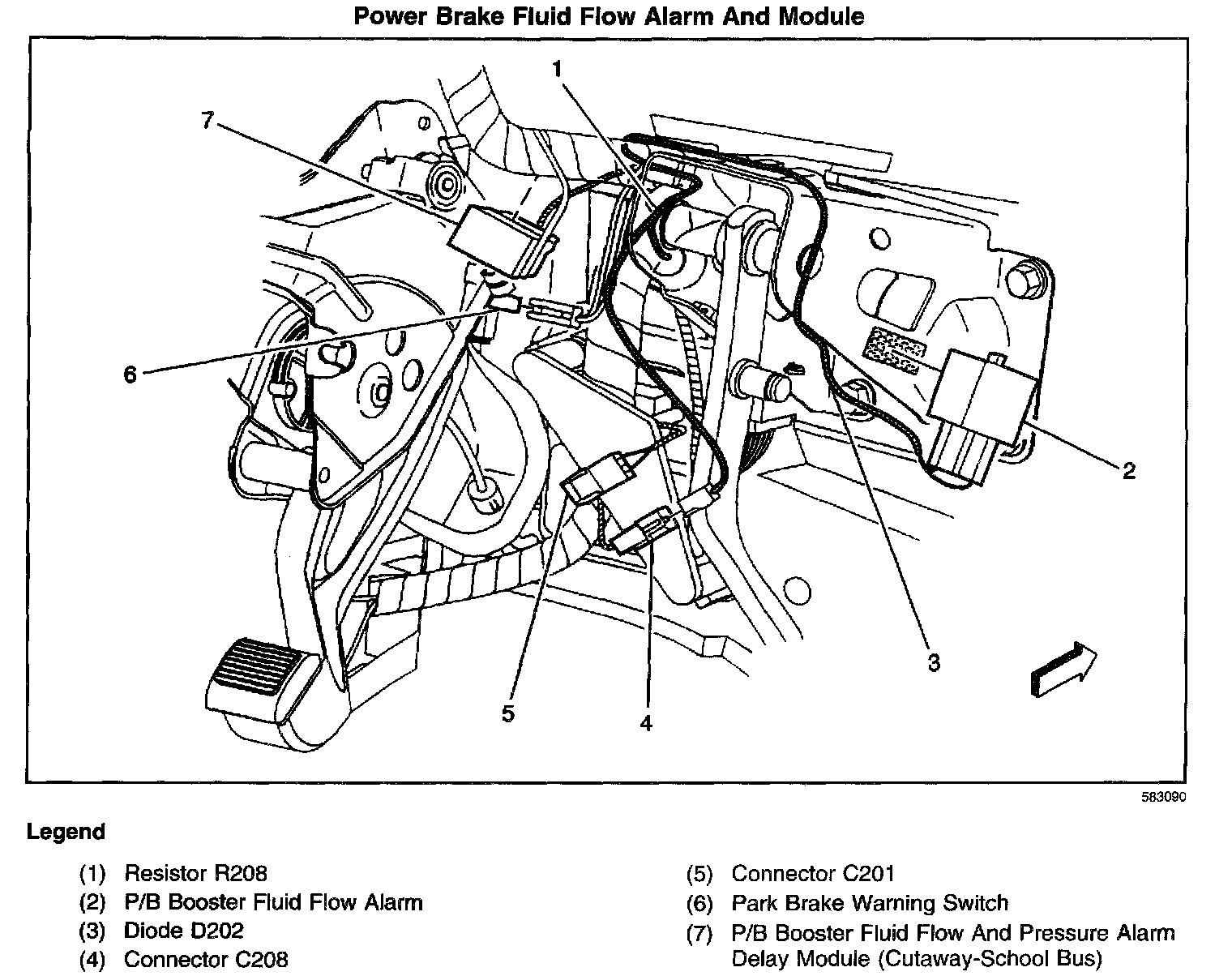 Brake warning harness under LH side of IP near convenience center and park brake warning switch