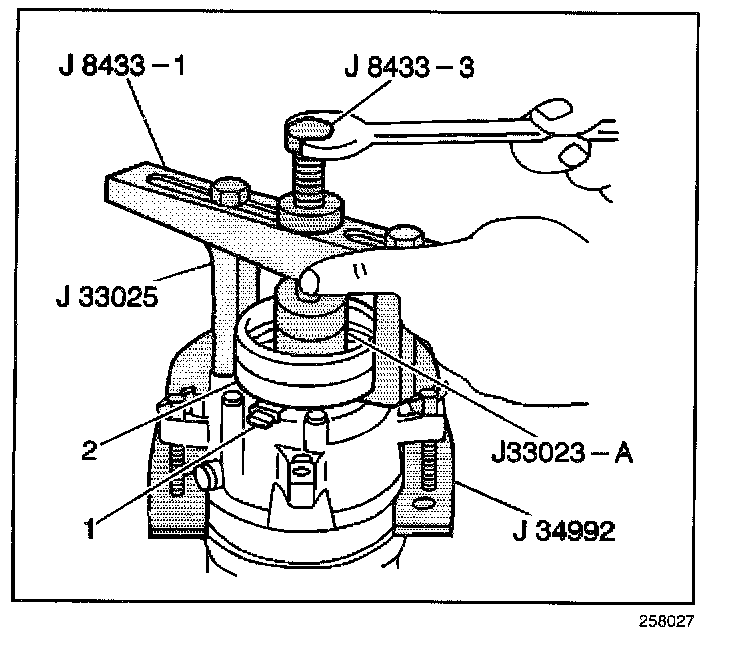 11. Install the J 8433-1 and the J 33025.