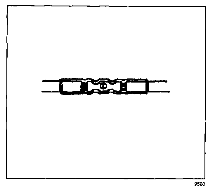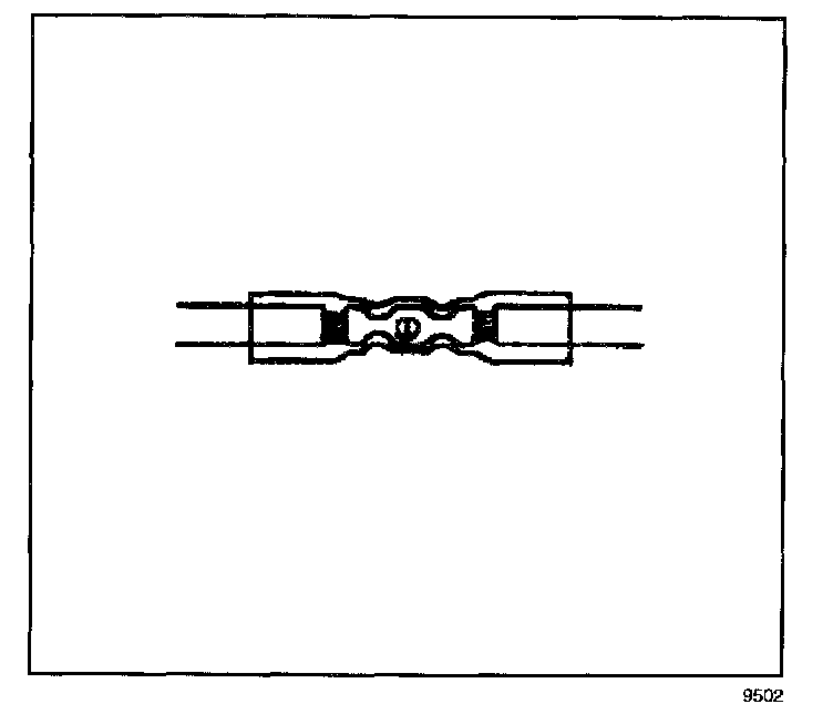 6. Place the splice sleeve in the nest. Ensure that the crimp falls midway between the end of the barrel and the stop. The sleeve has a stop (3) in the middle of the barrel (2) in order to prevent the wire (1) from going further. Close the hand crimper handles slightly in order to firmly hold the splice sleeve in the proper nest.