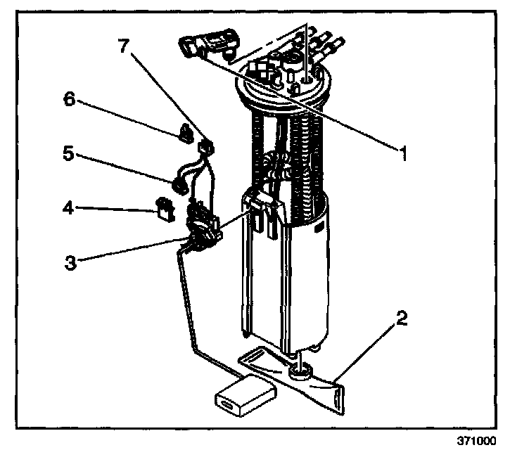 4. Disconnect the electrical connector (7) from the fuel level sensor under the fuel sender cover.