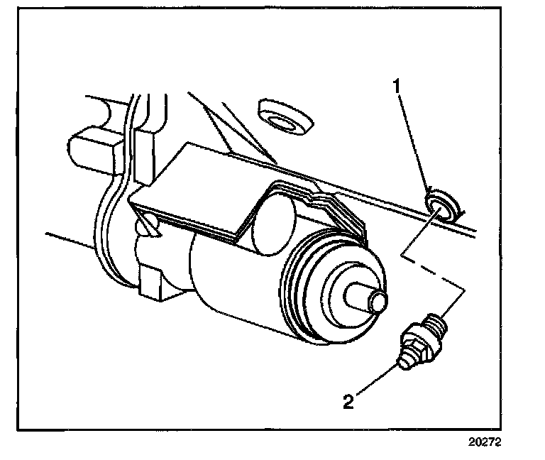 1. Install the knock sensor (2) into the engine block (1).