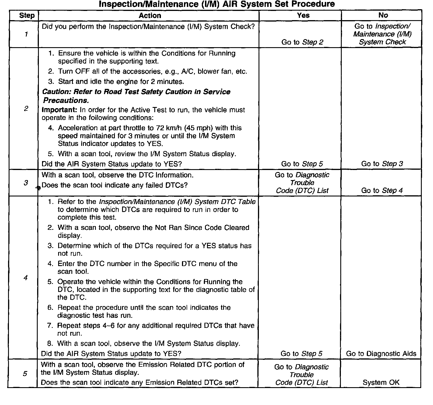 5. The I/M System Status only reports on whether or not a diagnostic has run, not what the outcome of the test was. If any Emission Related DTC sets after the tests are complete, the DTC will require diagnosis.