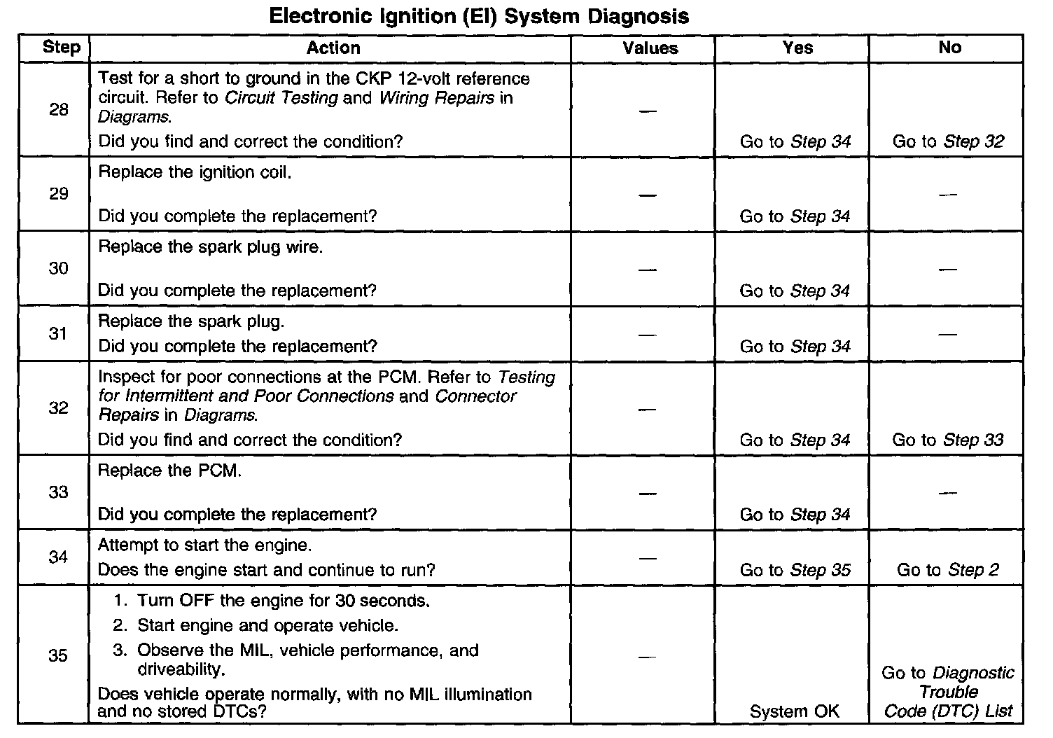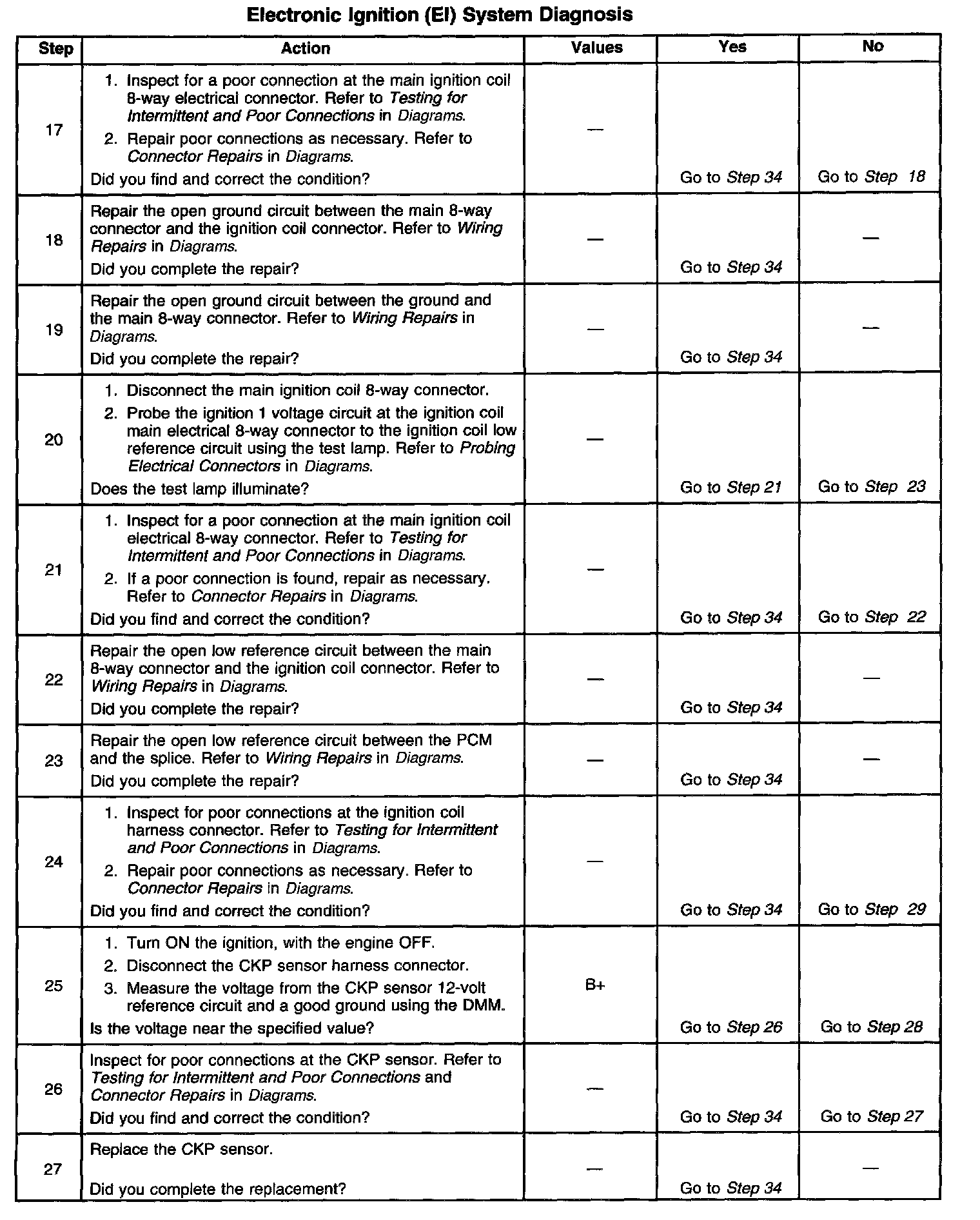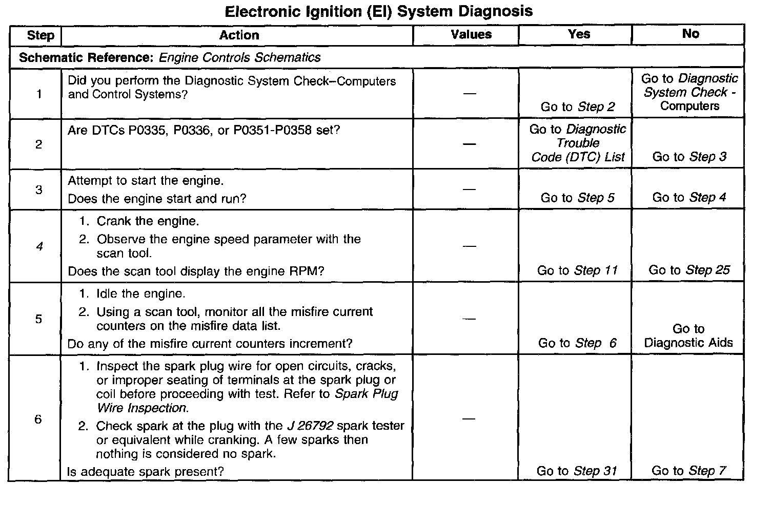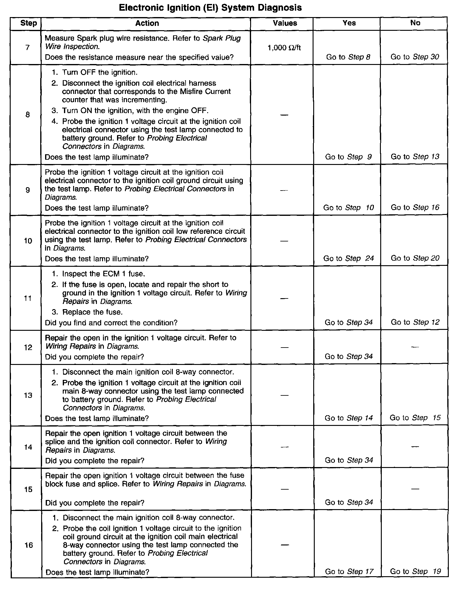 The number below refer to the step number on the diagnostic table.