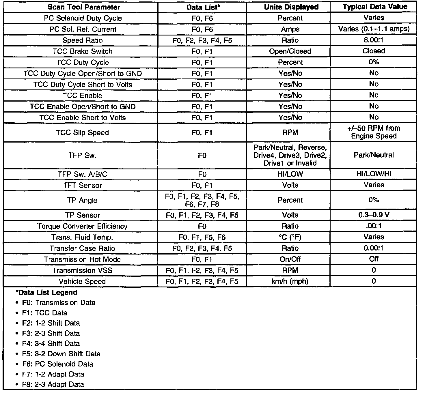 Only the parameters listed below are used for diagnosing. If a scan tool displays other parameters, the values are not recommended by General Motors for use in diagnosis. Scan tool values below were recorded under the following conditions: