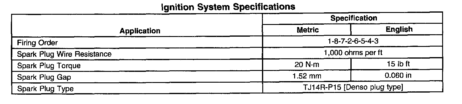 Ignition System Specifications: