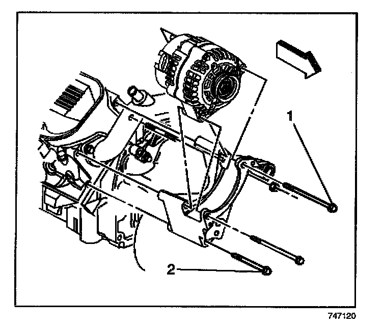 6. Install the generator bolts (1).
