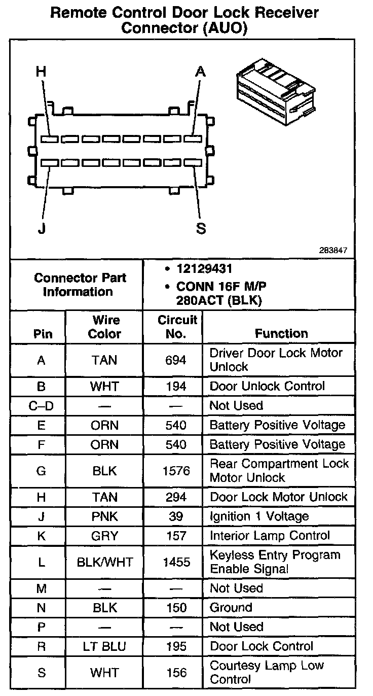 Remote Control Door Lock Receiver Connector (AUO):
