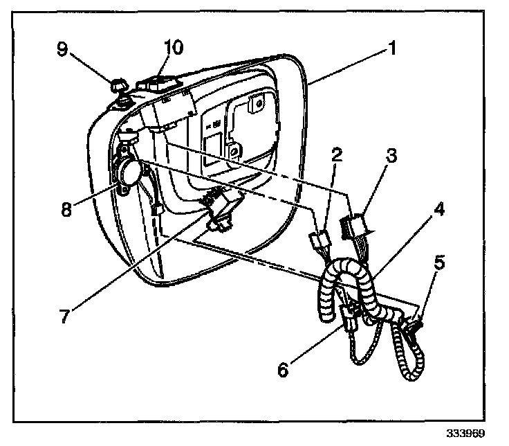 2. Remove the electrical connector (2) from the power mirror switch (9).
