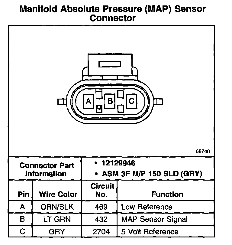 Mainfold Absolute Pressure (MAP) Sensor Connector: