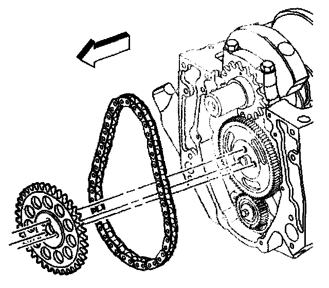 Notice: Align the timing marks before removing the timing chain. If it is necessary to turn either the camshaft or the crankshaft with the timing chain removed, loosen or remove the valve rocker arms. Turning either the crankshaft or camshaft with the timing chain removed may cause the pistons to contact the valves, resulting in damage.