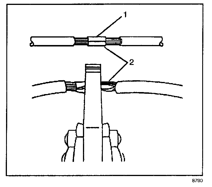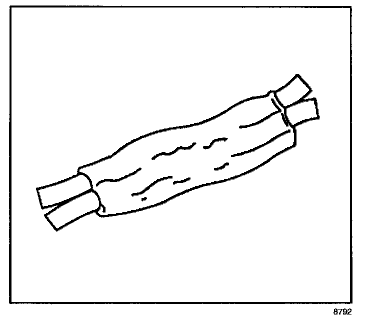 ^ Ensure that each splice is at least 40 mm (1.5 in) away from other splices, harness branches and connectors. This helps prevent moisture from bridging adjacent splices and causing damage.