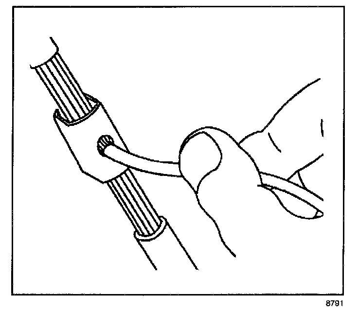 ^ Strip approximately 7.5 mm (5/16 in) of insulation from each wire to be spliced.