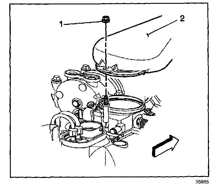 1. Remove the air cleaner assembly (2) and nut (1).