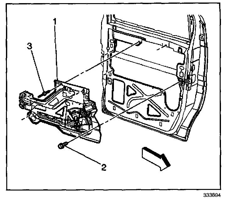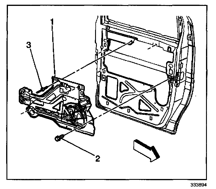 1. Install the front door module (1) to the vehicle.