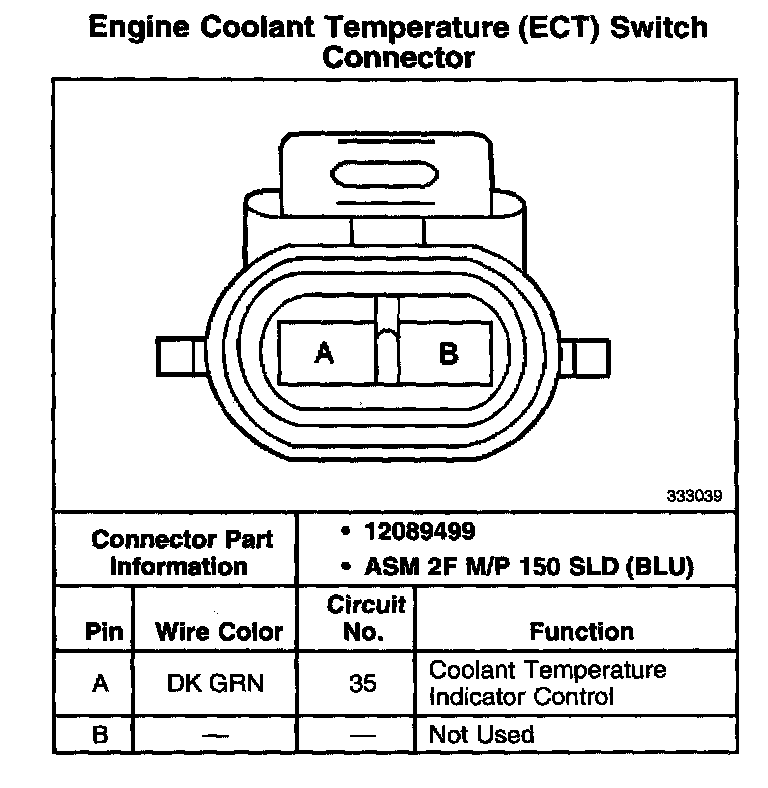 Engine Coolant Temperature (ECT) Switch Connector - Standard Models (Non-Alternative Fuels):