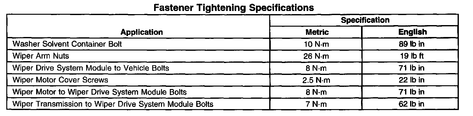 Wiper and Washer Systems: Specifications