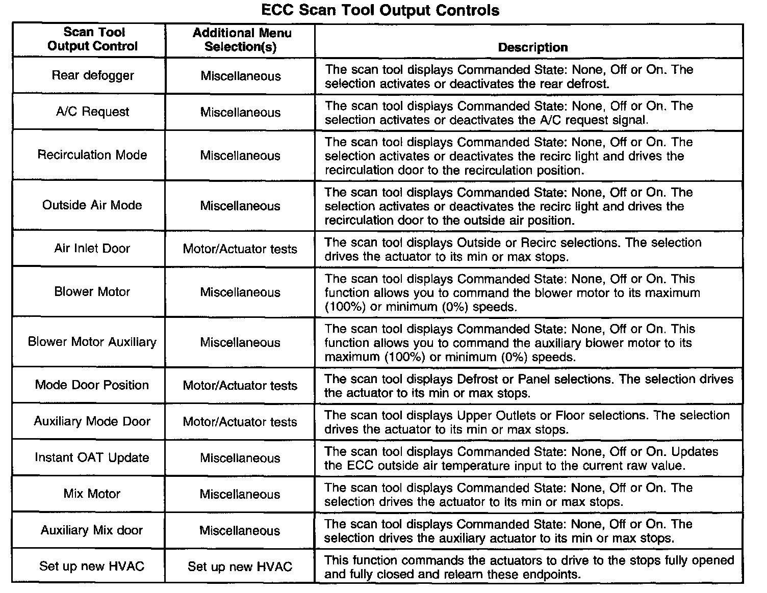 Scan Tool Output Controls - ECC