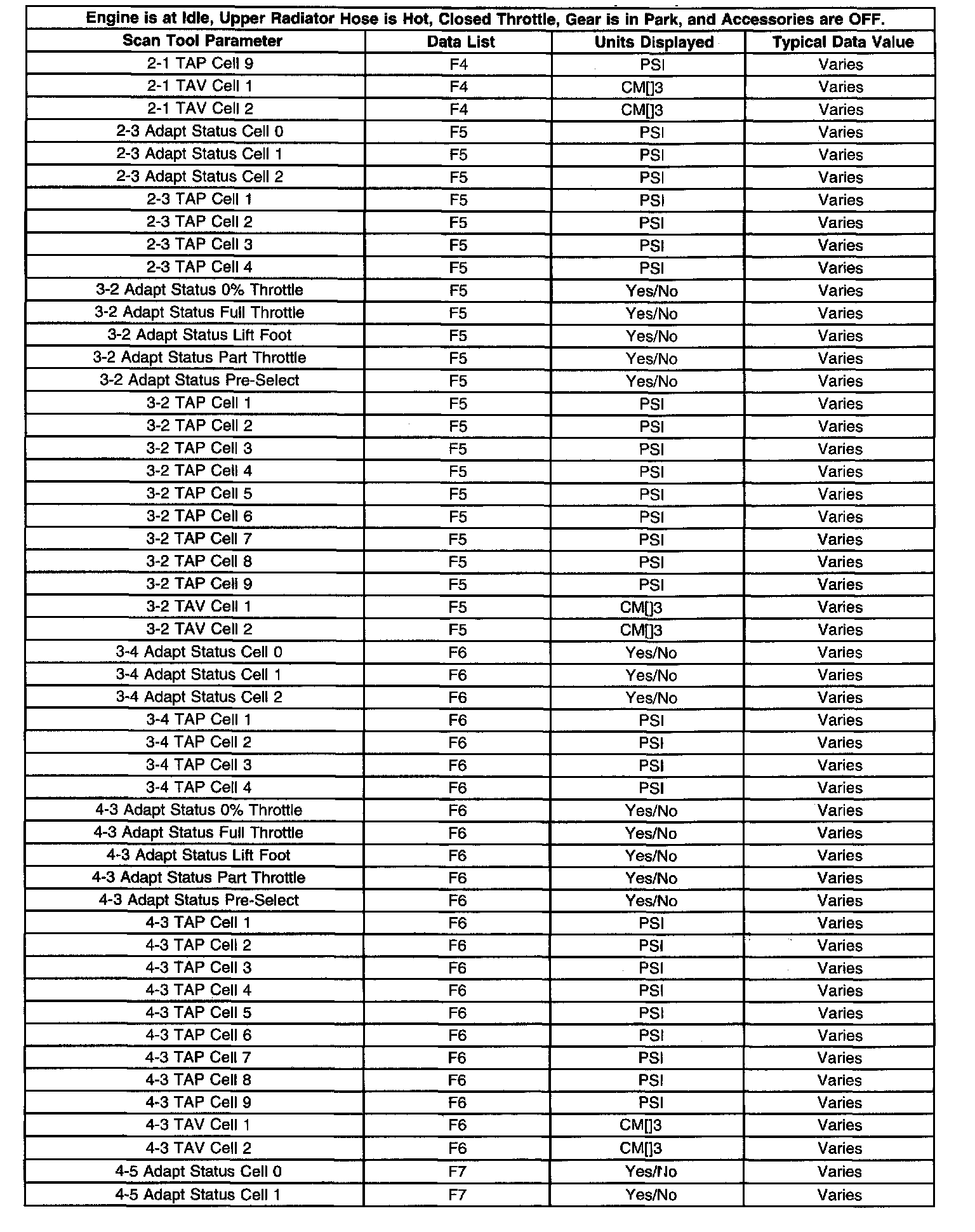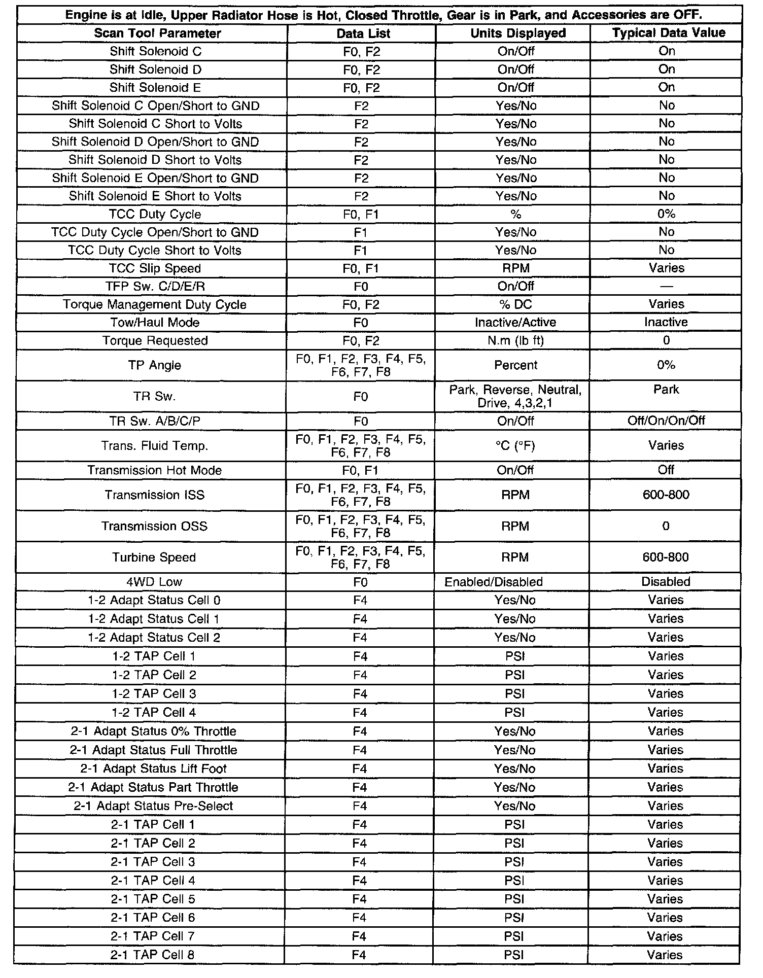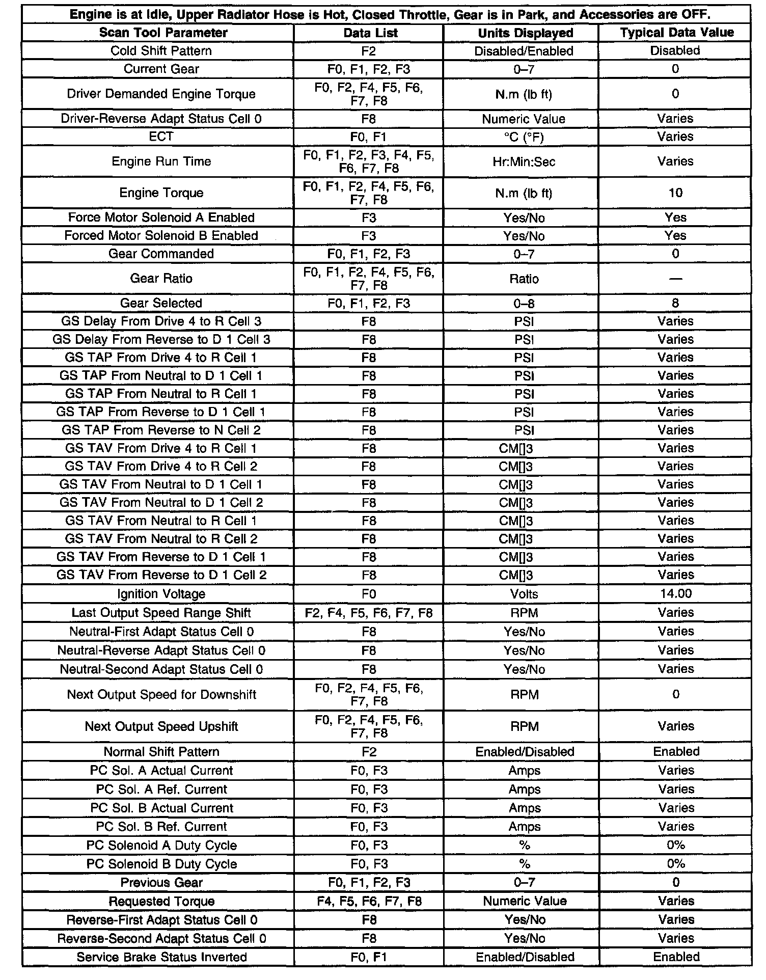 Transmission Scan Tool Data List