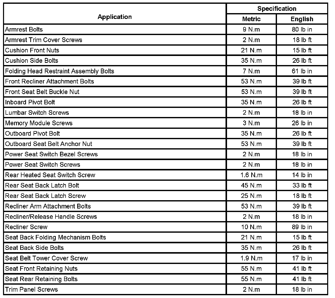 Fastener Tightening Specifications