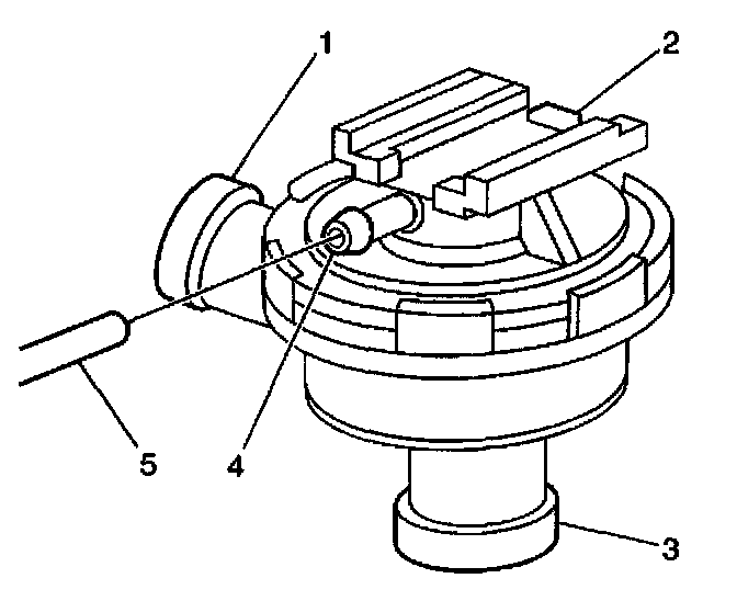 4. Remove the vacuum line (5) from the vacuum port (4) of the AIR pump shut-off valve.