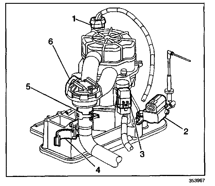 REMOVAL PROCEDURE1. Release the clamp (4) securing the AIR hose to the AIR pump assembly base.