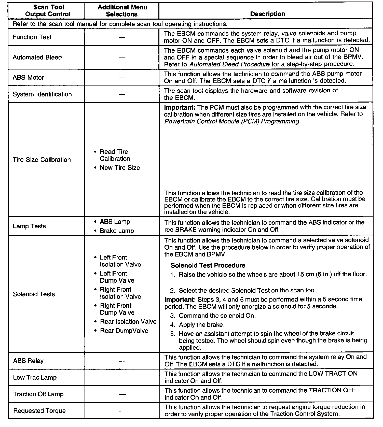 Scan Tool Output Controls