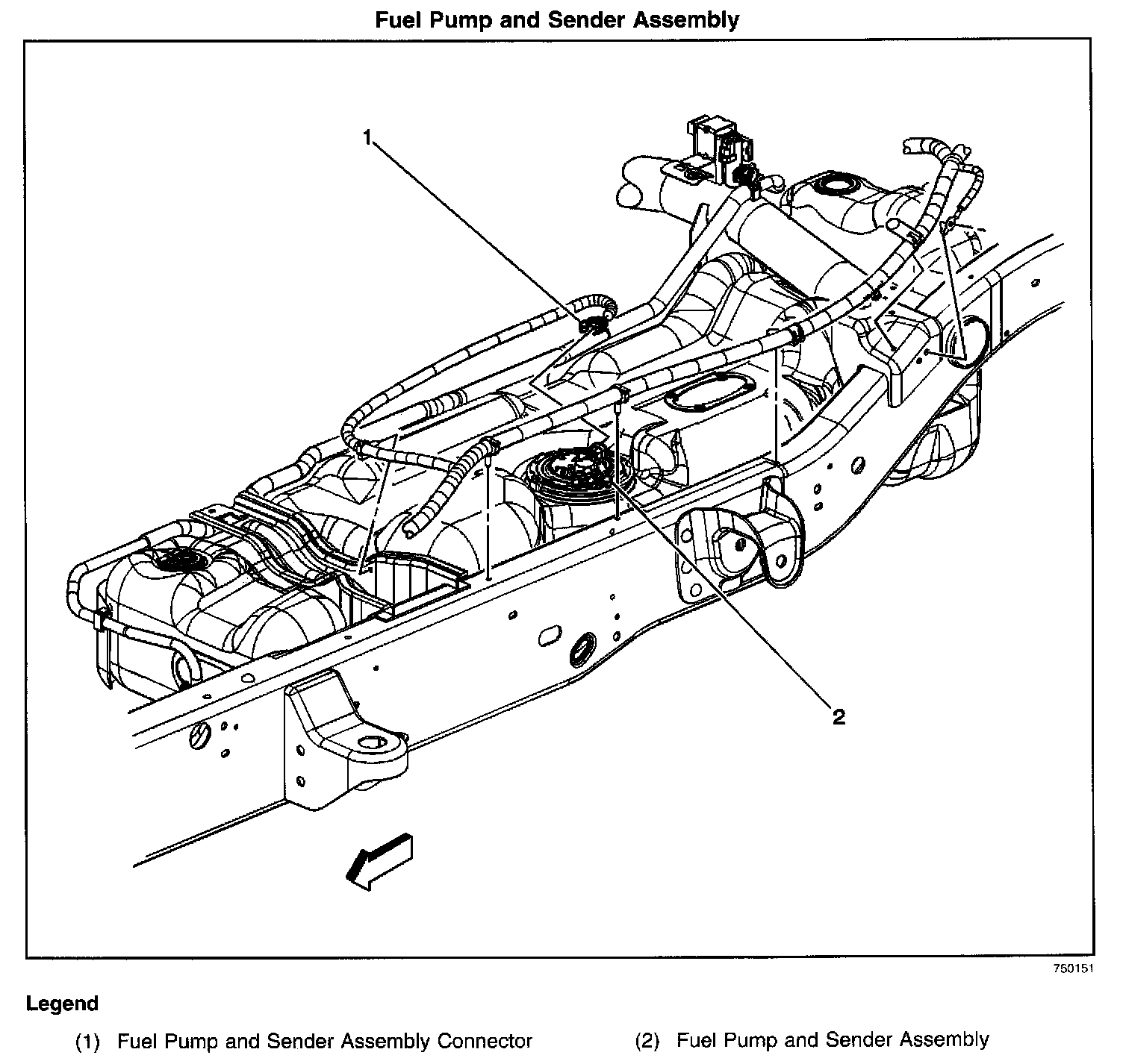 The Fuel Pump and Sender Assembly is located in the primary fuel tank.