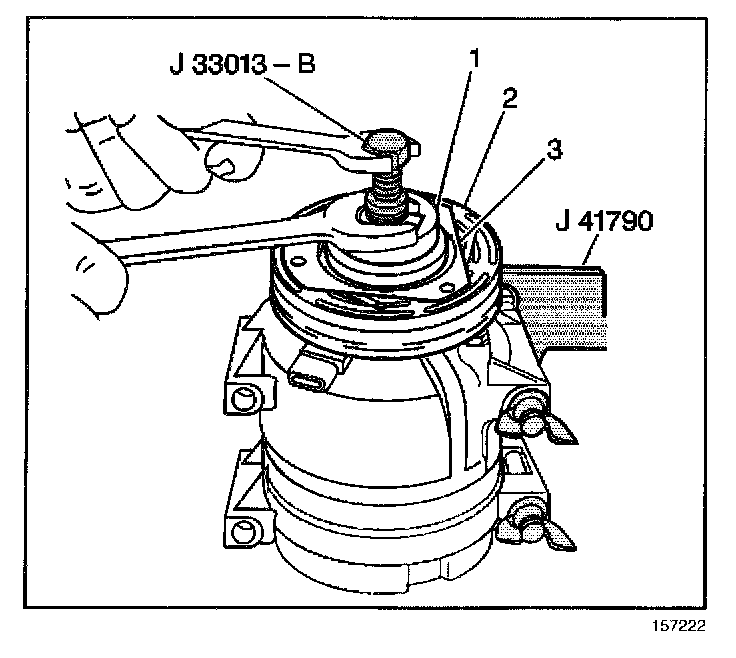5.1. Back the body of the J 33013-B off enough to allow the center screw to be threaded onto the end of the A/C compressor shaft.
