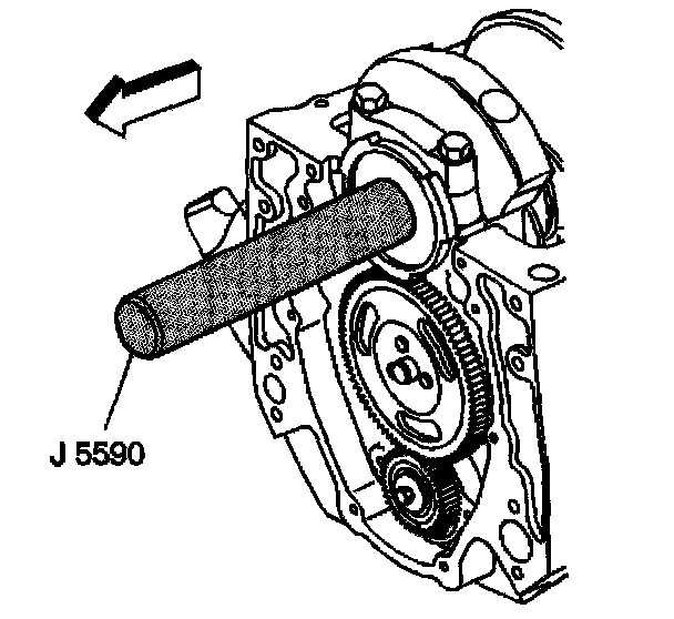 1.2. Use the J 5590 in order to push the crankshaft position sensor reluctor ring onto the crankshaft until completely seated against the crankshaft sprocket.