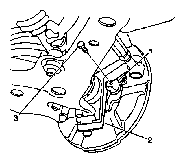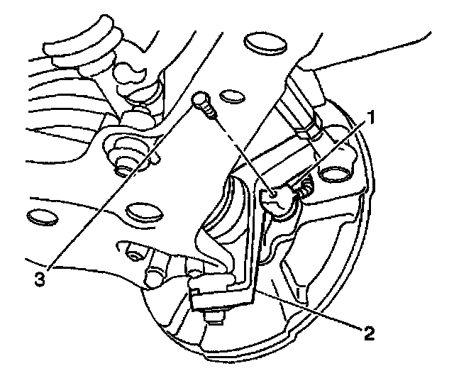 1. Install the front wheel speed sensor assembly (1) to the steering knuckle (2).
