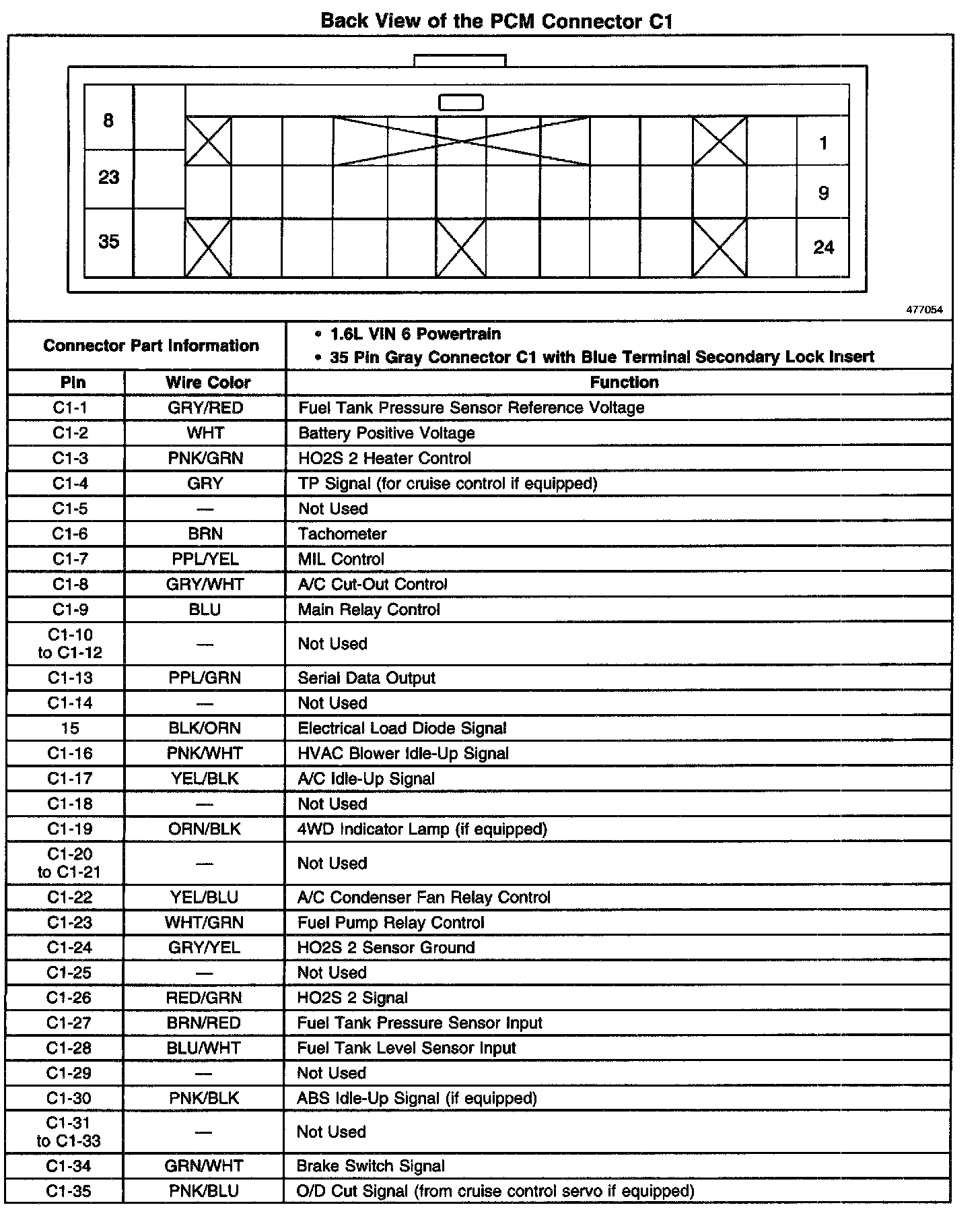 Back View Of The PCM Connector C1: