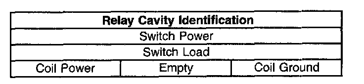Use the above relay cavity table in order to locate the correct cavities to probe during diagnosis. The table layout corresponds to the cavity layout of the relay block.