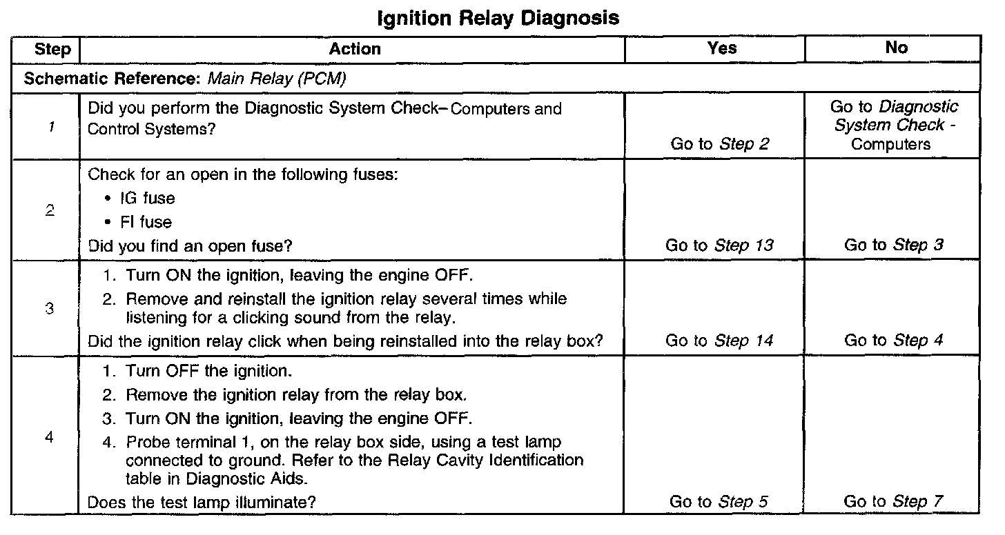 11. This step checks for an open in the PCM electrical grounds. The PCM will not operate the ignition relay if there are no electrical grounds.