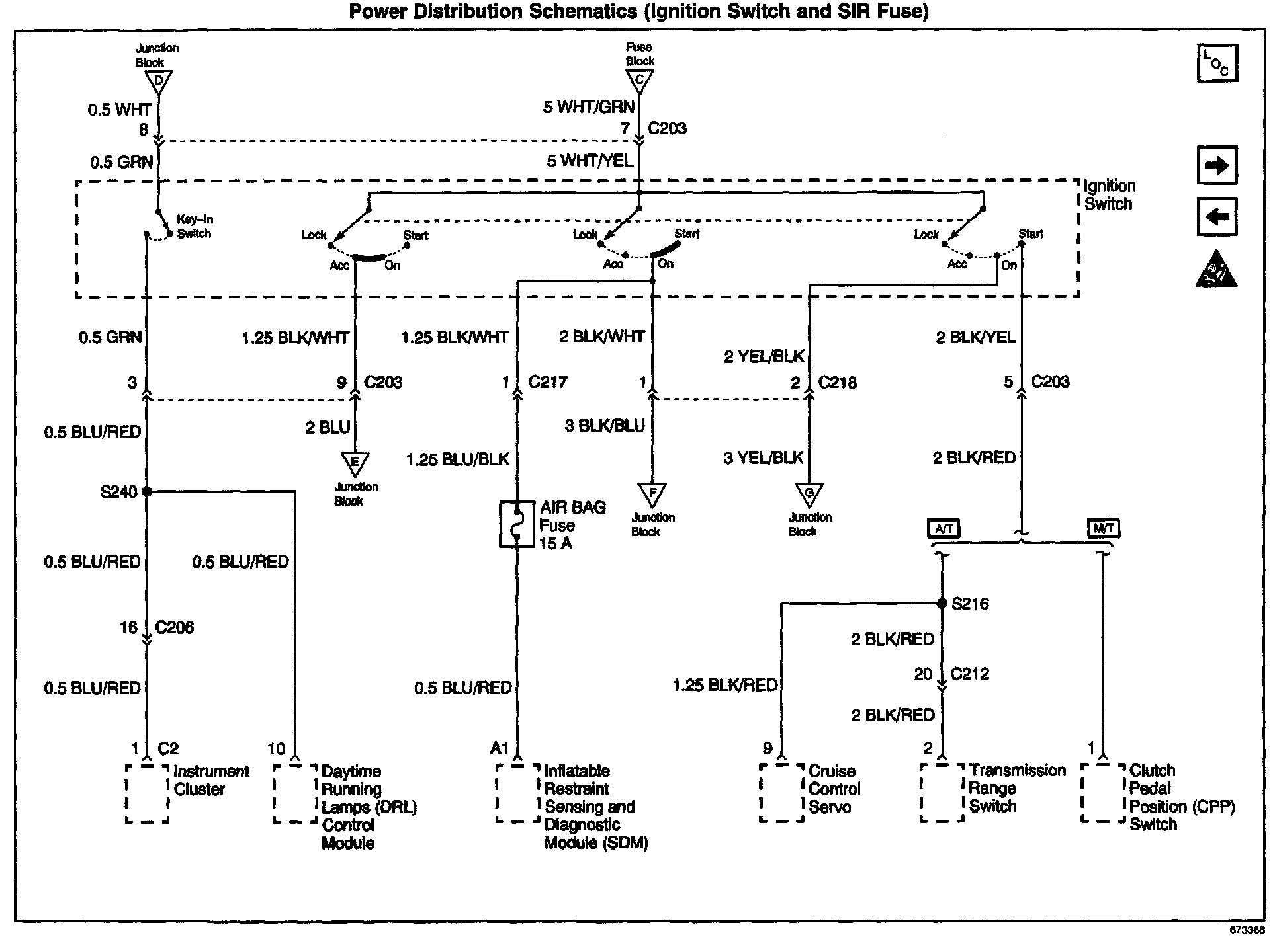 Power Distribution Schematics: Ignition Switch And SIR Fuse: