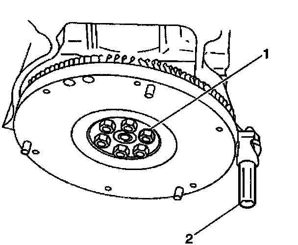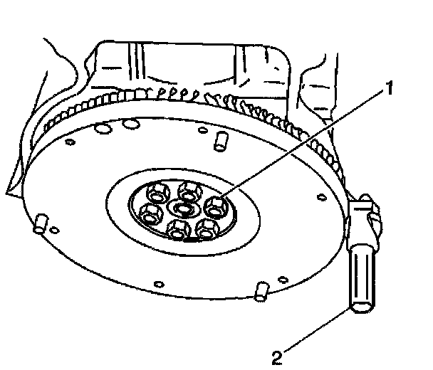 2. Apply GM P/N 12345493, or the equivalent, to the flywheel retaining bolt threads.